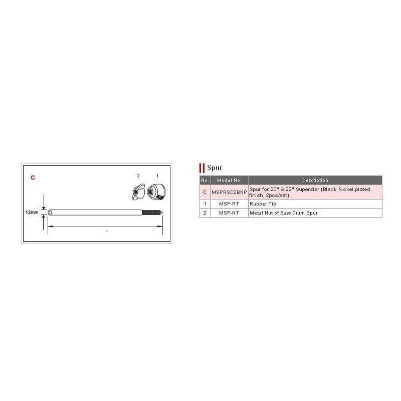 TAMA MSPRSC2BNP. Set de 2 pies para bombos de 20" y 22" de la serie Superstar Hyper-Drive. Acabado: Negro niquelado