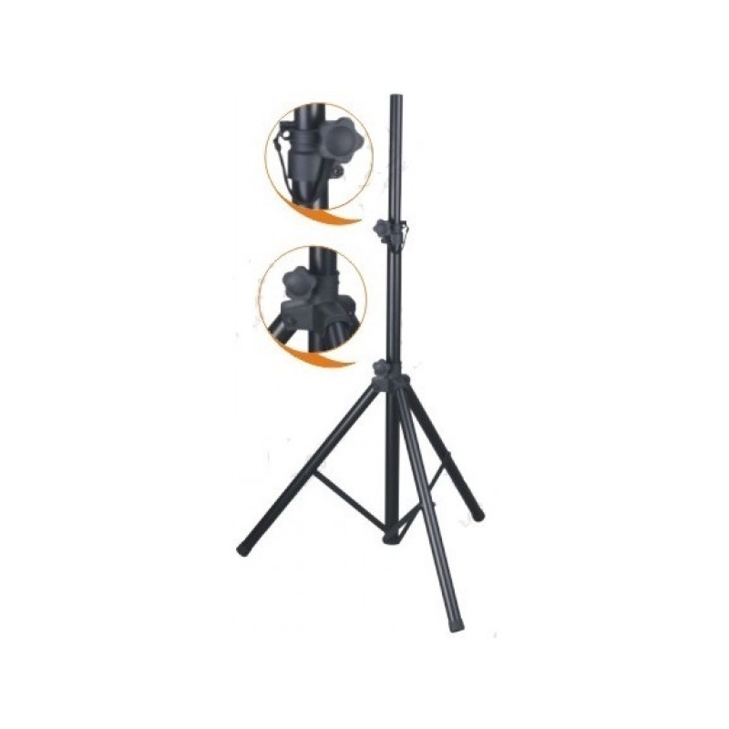 • Par de soportes para altavoces con conexión de Ø35mm. Hecho de acero• Sistema de ajuste con mando y pin de seguridad. También está equipado con un sistema de un sistema de resorte integrado en la conexión inferior para un descenso asistido• Bloque central y patas en nylon cargado. Patas de goma antideslizantes• Bolsa de nylon antidesgarro con asas...
