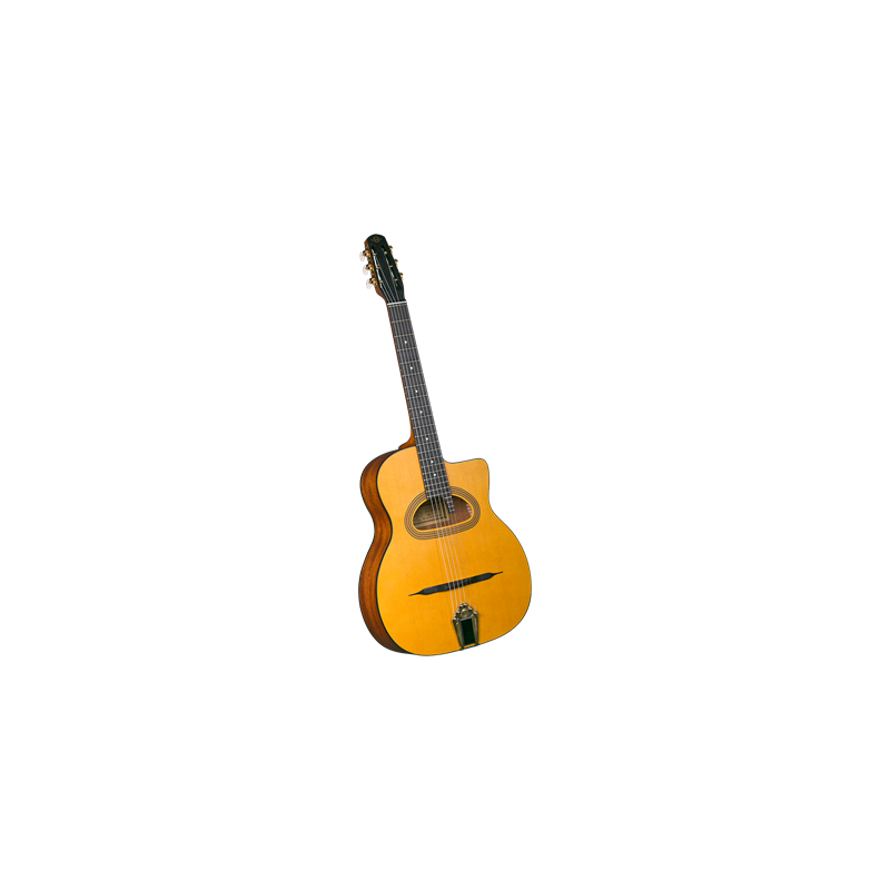 Tapa armónica de picea sitka maciza con gran boca de forma tradicional en forma de D, que crea un sonido jazz gitano cálido y ambiental