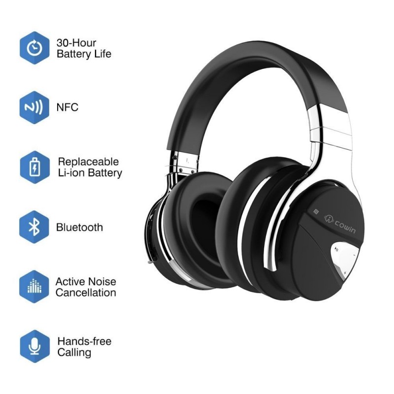 La tecnología de reducción ACTIVA de ruido avanzada alivia el ruido permanente que se escucha en las cabinas de los aviones, tren, autobús, en el tráfico de la ciudad o una oficina con mucha gente, la cancelación activa del ruido le permite concentrarse en lo que desea escuchar, disfrutar de su música, películas y videos. La función de cancelación ACTIVA de ruido puede funcionar tanto en modo inalámbrico como con cable. Controladores de 40 mm de gran apertura 90º. Respuesta de graves profunda y precisa. Los auriculares activos con cancelación de ruido de COWIN le ofrecen un sonido nítido, potente y silencioso que le ayuda a disfrutar de su música. El objetivo es que los usuarios tengan una mejor calidad de sonido y bloquear el ruido exterior para evitar que pueda distraer de la escucha. Incorpora un micrófono de alta calidad con tecnología NFC para atender las llamadas de manos libres, lo cual es conveniente para que se libere de los cables. Un rápido y estable emparejamiento con otros dispositivos habilitados con Bluetooth. El nuevo acolchado protector de los auriculares es suave y aislante, con un acabado de más durabilidad que le garantiza comodidad para escuchas prolongadas. Textura de piel, ajuste cómodo y ligero alrededor de la oreja que puede usar durante todo el día, le recordamos que es beneficios quítese los auriculares cada 2-3 horas para que sus oídos se relajen, a fin de obtener una mejor audición y mantener la cabeza cómoda. 30 horas de reproducción en modo Bluetooth. La batería de 600 mAh le asegura una conexión rápida y estable haciendo posible que sus auriculares permanezcan encendidos durante 30 horas en las que puede disfrutar de su mundo sin ruido. No necesita preocuparse por el problema de escasez de energía en un largo viaje. Garantía de 24 meses.