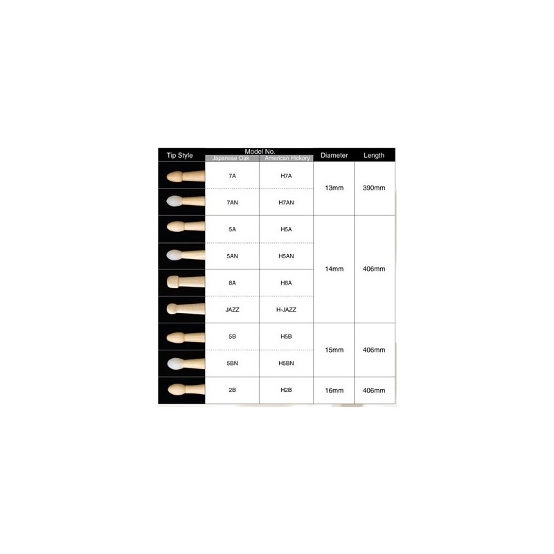 Material Japanese Oak Diameter 13mm Length 390mm Tip Style 7AN https://www.tama.com/eu/products/detail/7an.html