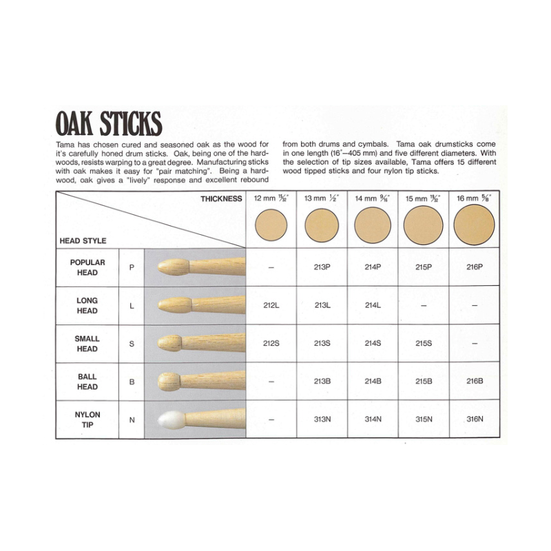 Material Japanese Oak Diameter 13mm Length 390mm Tip Style 7AN https://www.tama.com/eu/products/detail/7an.html