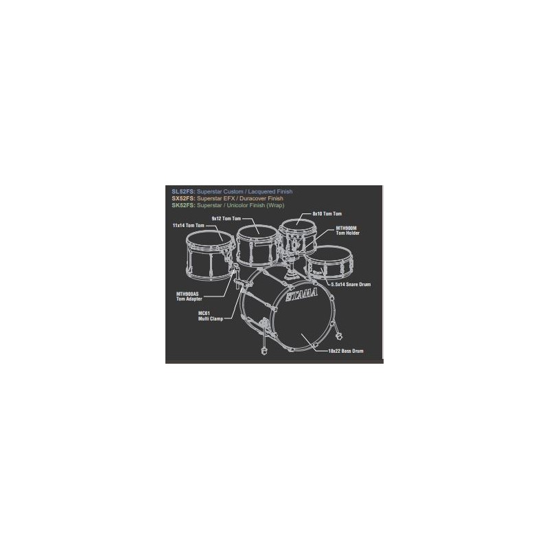 CaracterísticasBombo: SLB22E 18 "x22" Toms: SLT10A 8 "x10" y SLT12A 9 "x12" Tom de suelo: "X14" SLT14A 11 Caja: SLS55 5.5 "x14" Herrajes: MTH900M Tom holder y MTH900AS Single Tom Attachment Elementos, tales como platos o banqueta, que no estén en estas especificaciones, no se incluyen