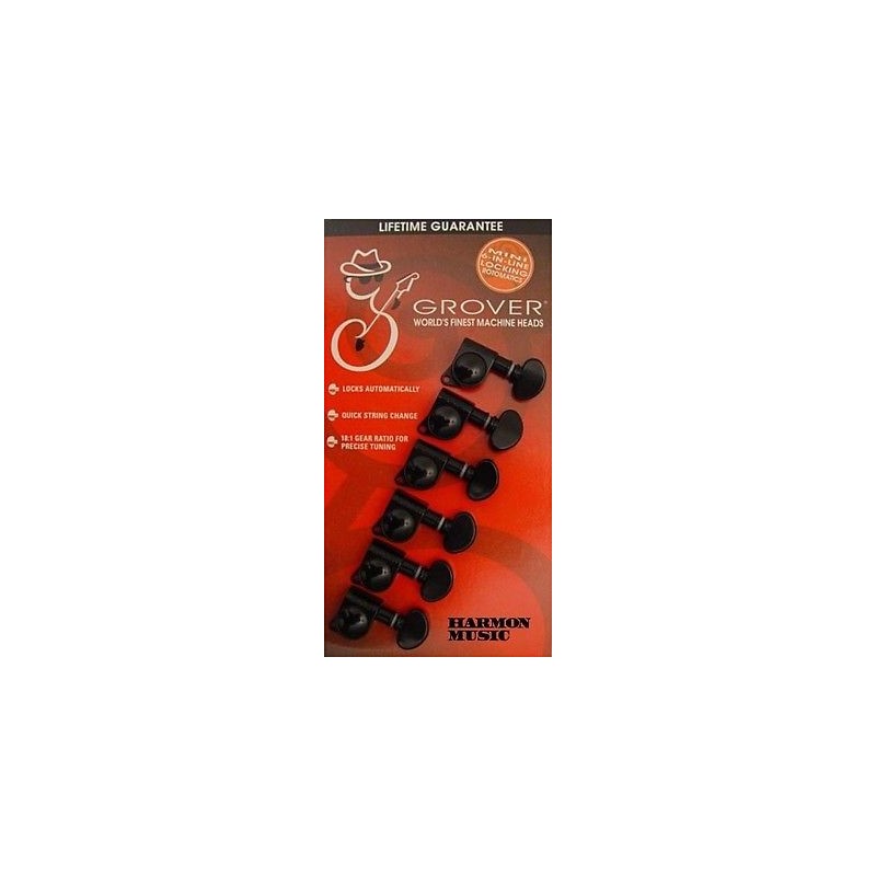 Grover clavijero mini con bloqueador para guitarra eléctrica negro 6 en línea