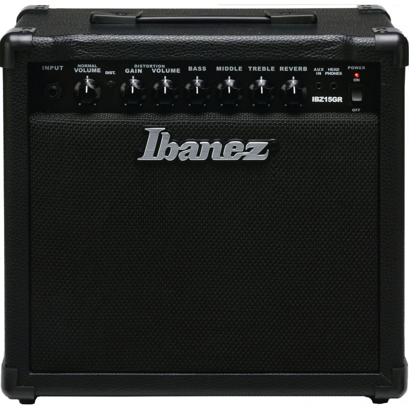 El IBZ15GR está diseñado para la guitarra eléctrica, pero se puede usar una guitarra acústica también. Otras características incluyen caja cerrada para una mayor respuesta de bajos, un canal de distorsión con controles de ganancia separados y volumen, y reverb. También hay un conector para auriculares para practicar en privado (y para evitar que otros de su caso), y una entrada auxiliar para iPod, reproductor de CD, etc