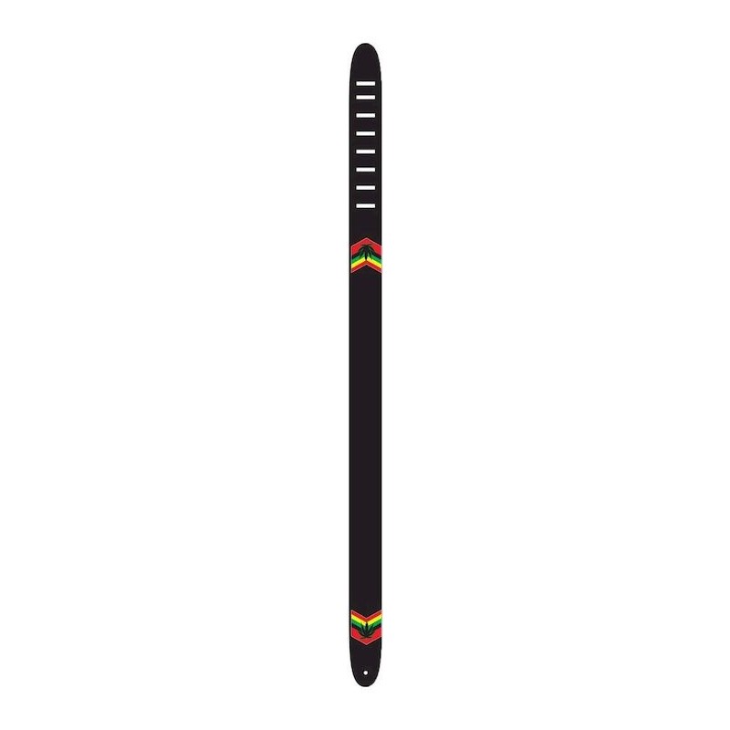 Correa de guitarra, color marron con bandera jamaica y hoja de maría.