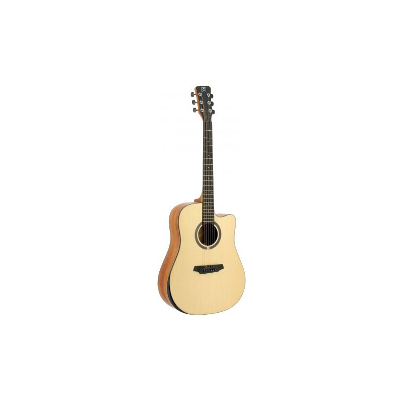 Guitarra electro-acústica con cutaway tipo dreadnought. Sistema confort para mayor comodidad. Tapa sólida de picea. Aros y fondo de sapelly. Puente ydiapasón de "compound rosewood". Clavijeros cerrados.Cuedas D´Addario. Previo con ecualizador y volumen independientes. Acabado mate natural.