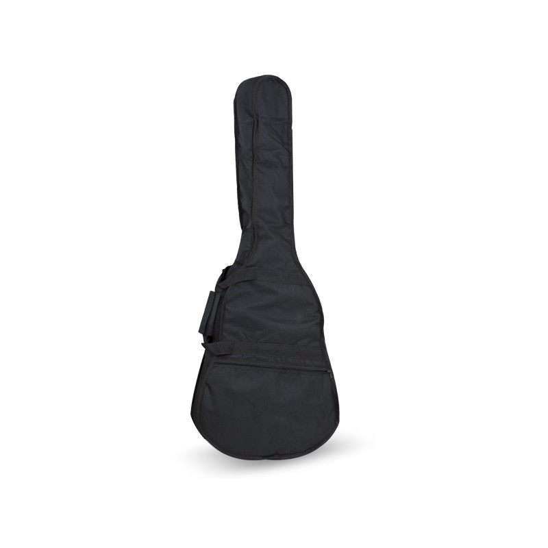 Funda acolchada de 10mm para guitarra de 85cm - 1/2. Correa regulable con protecciones para mochila. Anclajes de correa metálicos. Asa mejorada para transporte mas comodo. Bolsillo para partituras. Refuerzo exterior en fondo. Logo EK.