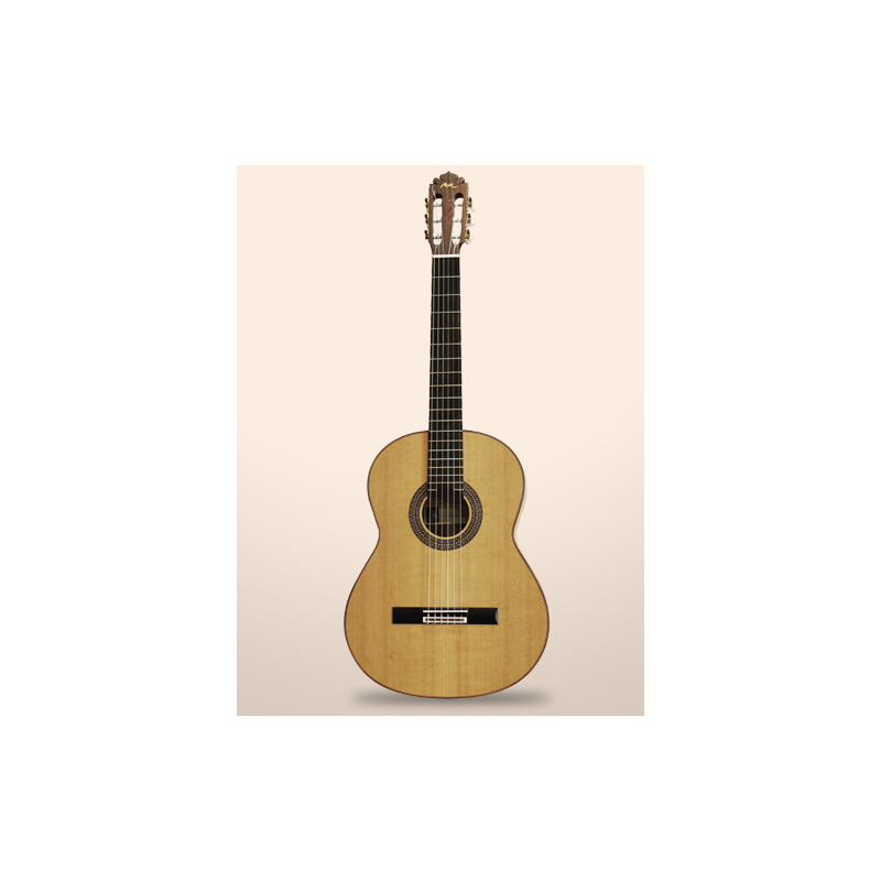 Guitarra "admira" A 5. Proceso de Construcción Tradicional Español. Tapa de Cedro macizo Aros y Fondo de Palosanto de India Ribetes en tapa y fondo Brazo de Caoba Diapasón y Puente de Palosanto Clavijeros Dorados Lira Cuerdas Savarez CJ500 Acabado alto brillo.