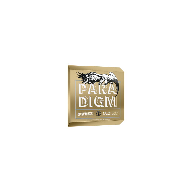 Juego de cuerdas para acústica Paradigm. Calibre .010 .014 .020 .028 .040 .050 Las cuerdas Ernie Ball Paradigim representan un antes y un después ofreciendo una resistencia a roturas y durabilidad superior e inigualable; y siempre ofreciendo nuestro icónico sonido Slinky.