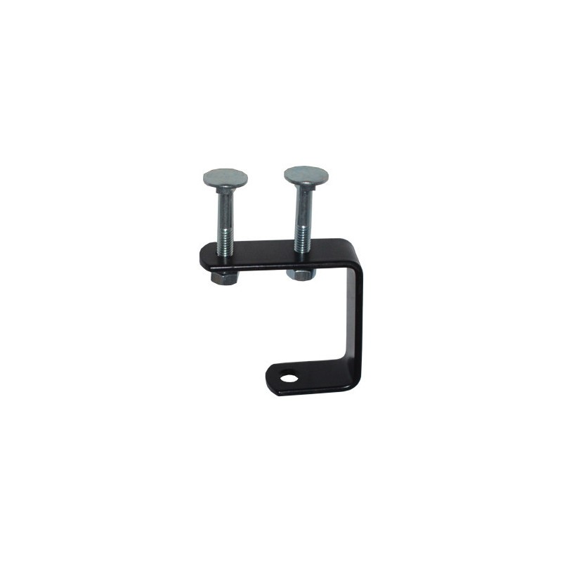 Soporte para caja china de una ranura. Forma de U. Incluye 2 tornillos y tuercas. Acabado: lacado negro. Caja china no incluida. Peso aproximado 90g. Fabricado en España.