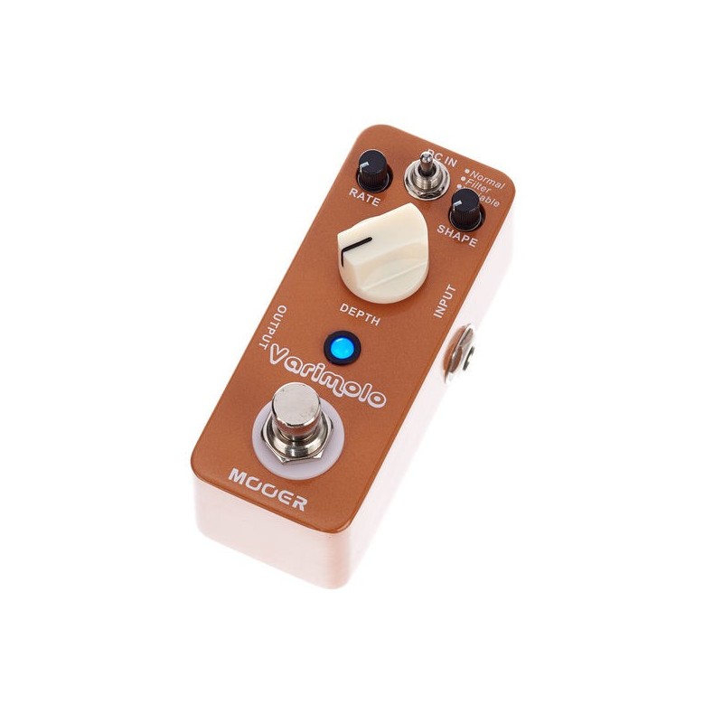Para guitarra eléctrica Sonido de trémolo óptico clásico Amplio rango de velocidades y profundidad Controles: Profundidad, Velocidad, Shape, Interruptor Normal/Bright Carcasa metálica Bypass auténtico Fuente de alimentación opcional 9V DC (centro negativo) Dimensiones: 60 mm x 62 mm x 53 mm (ancho x profundo x alto) Peso: 262g Incluye cinta de velcro