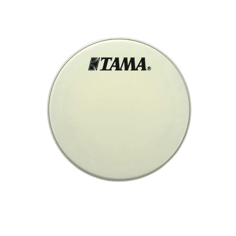 Parche para bombo Tamaño: 20" Color: Blanco con el logotipo de Tama en negro Una capa Parche resonante muy fino