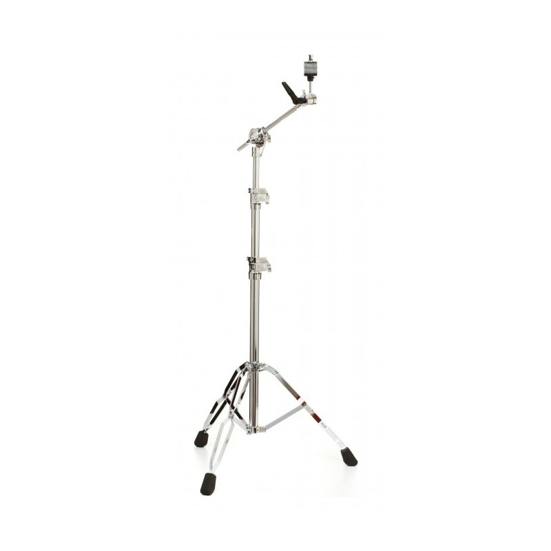 Soporte para platillos recto con extensión boom que presenta un basculante de dientes finos y una tuerca de mariposa cautiva
