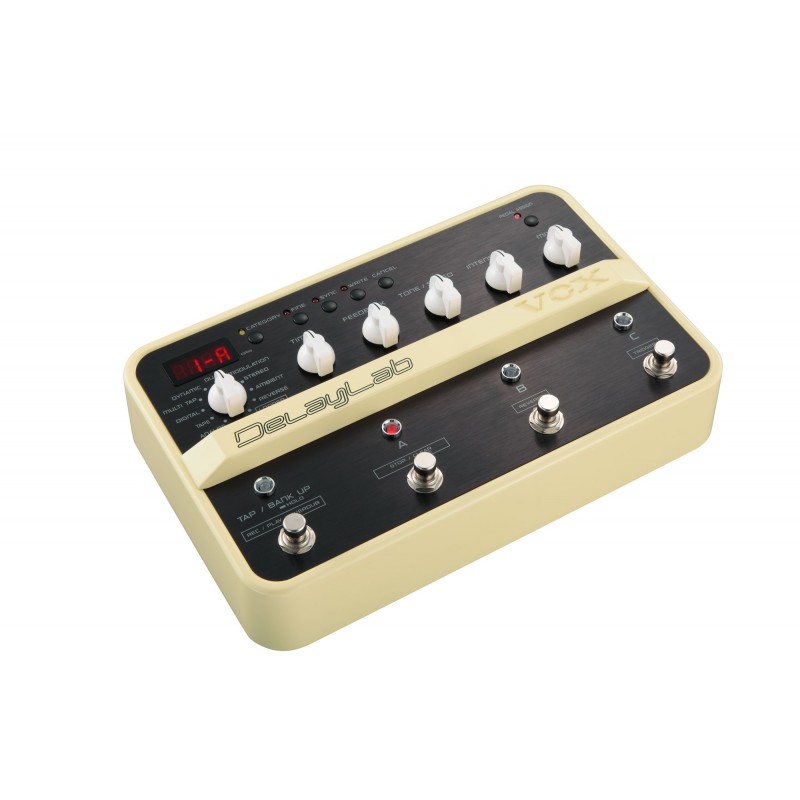 PEDAL DE EFECTO Pedal de delay VOX Delaylab. Los Efectos de Retardo son una necesidad para satisfacer la creatividad de cualquier guitarrista. Su larga historia va desde la era analica a la digital. Muchas unidades Delay clicas han jugado un papel importante a lo largo de los as, contribuyendo a ese punteo memorable, generando inigualables espacios sonoros, y produciendo interpretaciones psicodicas, tanto en escena como en el estudio. Estas demandadas unidades, ascomo los Delays que se han convertido en estdar de la siguiente generaci, est todos incluidos en VOX DelayLab. Adem de 30 Efectos variados de retardo, el DelayLab ofrece un Looper Esteo que puede capturar hasta 28 segundos, 30 Programas listos para el directo, y muchos extras, todo ello contenido en un resistente cuerpo metico. Con su clico y expresivo sonido, el sencillo panel ofrece un control inmediato de sonidos y funciones. En resumen, el DelayLab ofrece un potencial virtualmente infinito que representa el nuevo estdar de procesadores de Efectos. - Efectos de Retardo: 30 tipos. Programa de canciones clicas: 10 Programas. Efectos Looper Delay: 3 tipos:Looper (Digital Delay, Analog Delay, Space Delay). Programas: 30. Entrada de Audio: R, L/MONO. Salida de Audio: R, L/MONO. Procesado de sel: Conversor A/D = 24 bit, Conversor D/A = 24 bit. Frecuencia de muestreo = 48 kHz. Alimentaci: AA Baters alcalinas x 6. (Opcional) Adaptador AC. Consumo eltrico: DC9V 200 mA (Tica). Dimensiones: 260 x 164 x 66 mm. Peso: 1.5 kg.