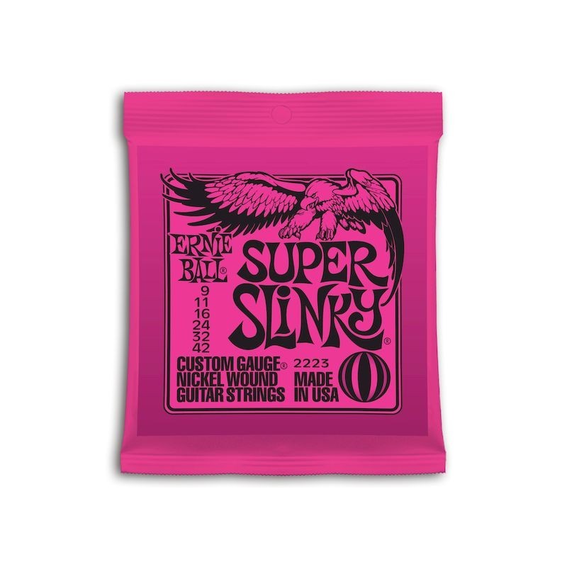 Ernie Ball Super Slinky Cuerdas Eléctricas se juegan por Jimmy Page, Jeff Beck, y Angus Young.
