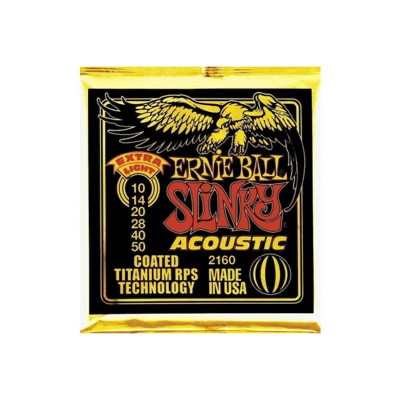 Juego de cuerdas. Calibre .010 .014 .020w .028 .040 .050. Las cuerdas e acústica Ernie Ball Coated 80/20 están caracterizadas por un recubierto de esmalte patentado en las cuerdas entorchadas y un "blindaje" contra la corrosión en las cuerdas lisas. A parte de este exclusivo recubrimiento, todas las cuerdas lisas han sido reforzadas con un sobre entorchado de titanio en la bola de contención. las cuerdas están recubiertas de una aleación combinada de 80% de cobre y 20% de Zinc. Las cuerdas Ernie Ball Coated combinan lo último en tecnología aplicada en la fabricación de las cuerdas. Caracterizadas por la aplicación de una microcapa de esmalte que previene el debilitamiento y la corrosión multiplicando por cinco su durabilidad con respecto a las estándares, las cuerdas Coated Titanium han sido reforzadas con un entorchado de titanio en la base inicial que nos estabilizará la afinación y nos prevendrá las roturas en esta zona tan crítica. Las cuerdas EB Coated siguen manteniento el tono y tacto en el que han confiado los músicos durante más de 50 años!!!.